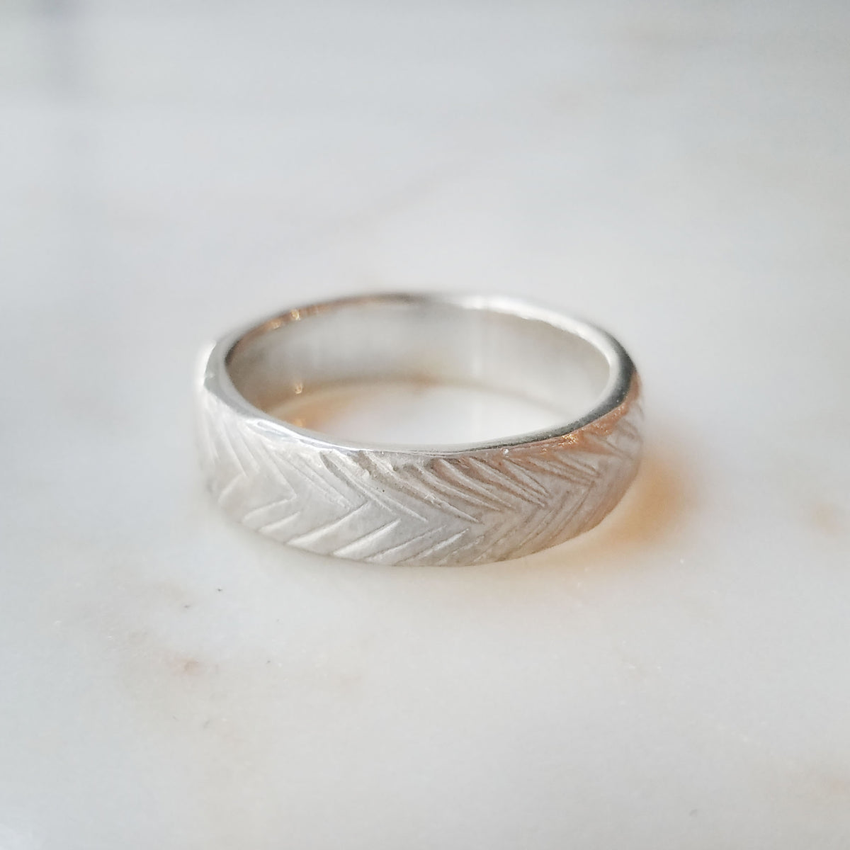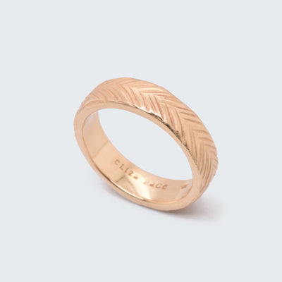 This ring is part of the exclusive bridal collection by Eliza Page and is designed and finished in Austin, TX. Arrow cuts with brushed finish.