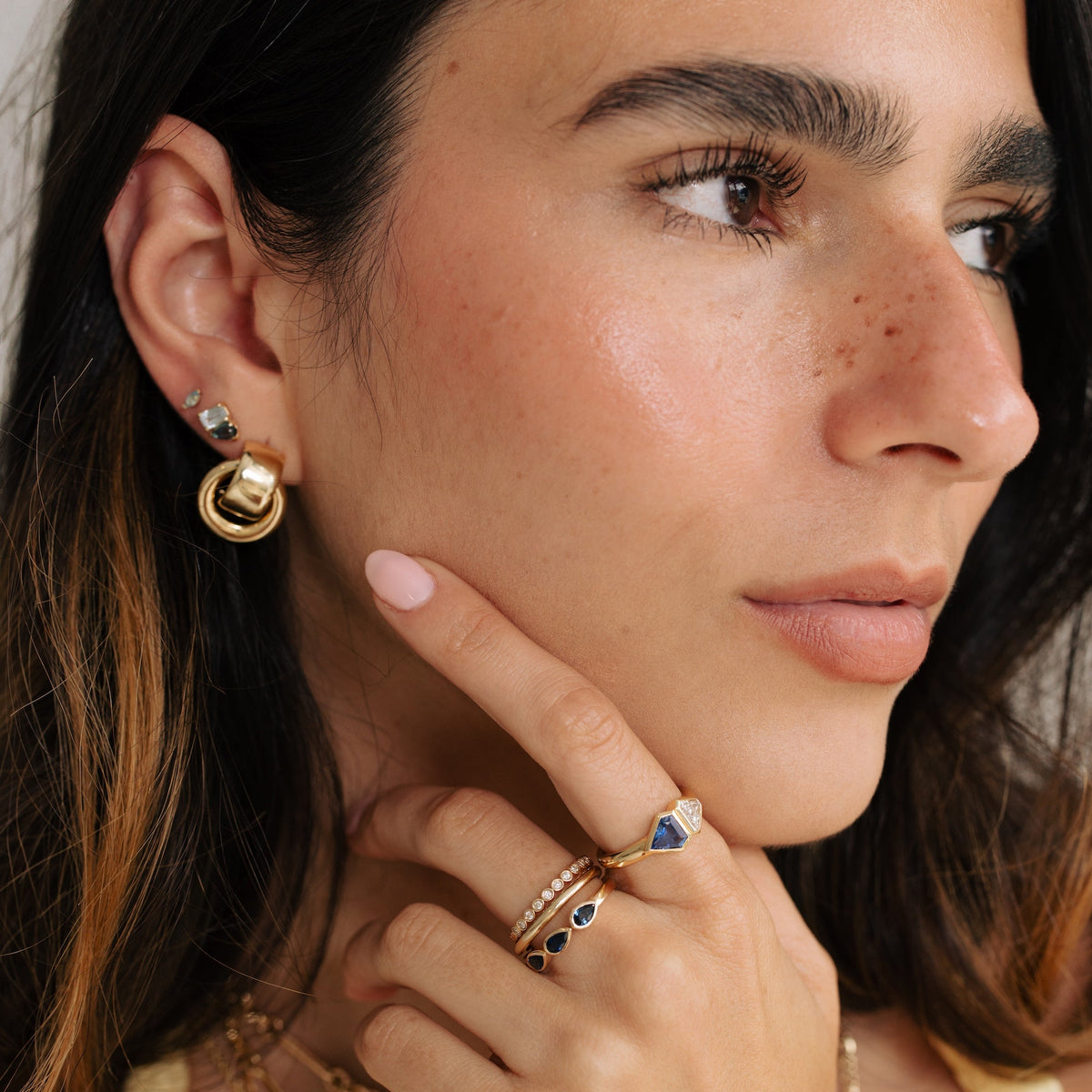 These small door knocker earrings are versatile and can be dressed up or down. In 14k yellow gold with a post back, they are perfect for any outfit.