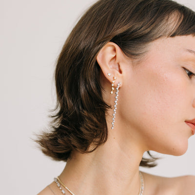 A strand of round diamonds in alternating sizes gives these drop earrings a rhythmic flow of sparkle. Set in 18k white gold, the diamonds sparkle from every angle.