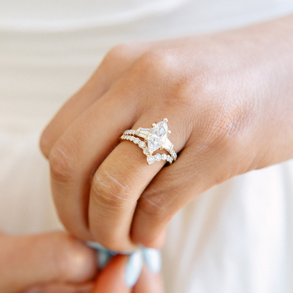 Elegant gold & diamond ring in a contouring V shape. The perfect addition to your wedding stack.
