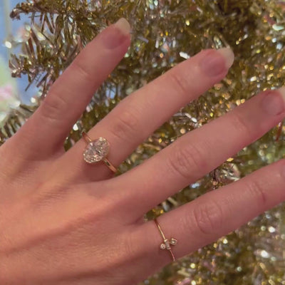 The Ashton engagement ring combines striking design elements with refined craftsmanship. Designed for someone with confident personal style, this ring makes a statement while maintaining sophisticated appeal. The design reflects modern sensibilities and suits someone who values both quality and distinctive aesthetics, with a 2.07 carat bezel set lab grown oval diamond in a petite tab claw prong setting.