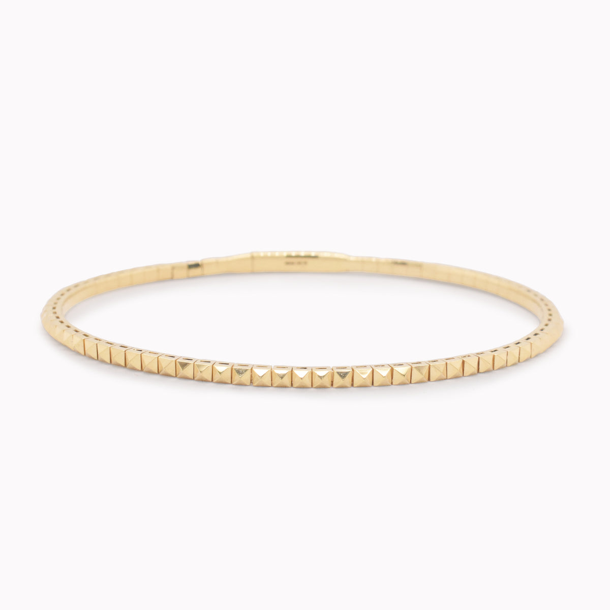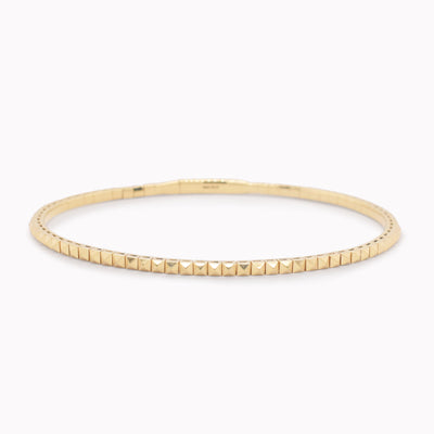 Flexible, square link spiked stud bangle in 14k yellow gold.