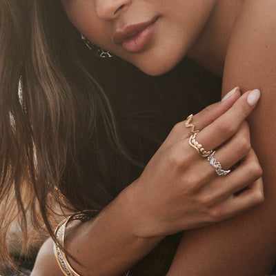 We took the shape of our signature Curve Ring and cast it in layered bead shapes for an organic look. This ring adds texture and interest to your stack and nestles nicely with our other Curve designs.