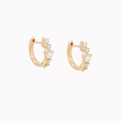 Delicate shared-prong huggie earrings with five round diamonds in varying sizes, creating a subtle blend of elegance and sparkle.