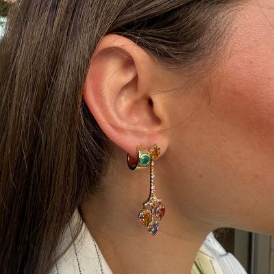 Wide Dot Emerald Huggie Hoops