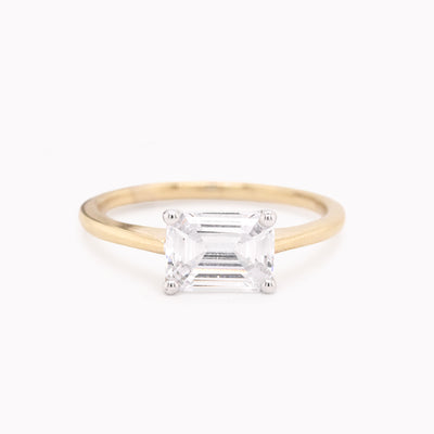 The Edith is a mixed metal, east/west prong set emerald-cut engagement ring setting. This style can be customized based on stone and metal preference. Part of the Eliza Page Collection.
