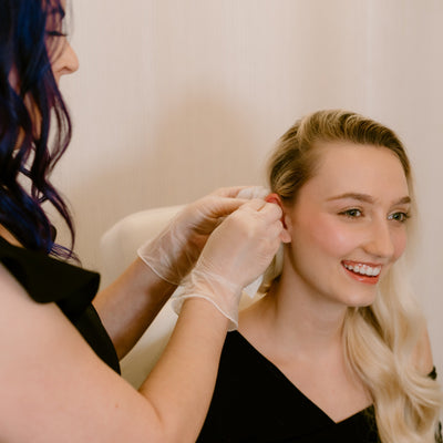 Give the perfect gift and let them choose their sparkle. Ear piercings are free with any purchase of our piercing studs or piercing gift card. All studs are 14K gold, nickel-free, sold individually, and starting at $125 each.