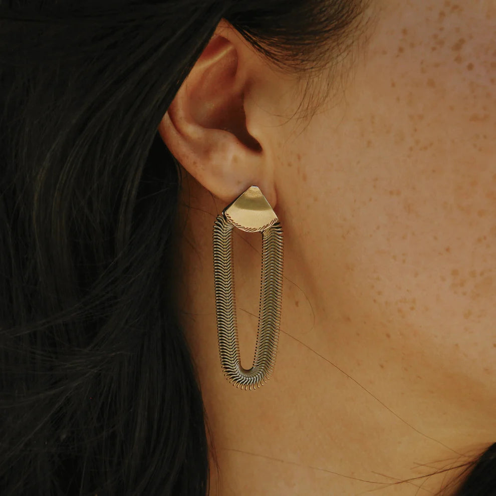 The Serpentine Earrings are a meditation on movement, growth, and the cycles of life. Much like the undulating forms of vines & petals, the chain in these earrings emulates the movement of serpents–true symbols of forward motion, adaptability and transformation.