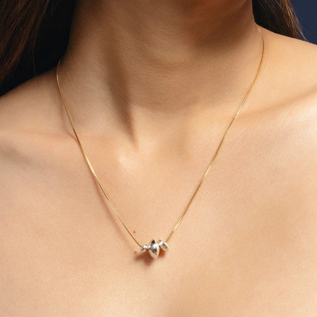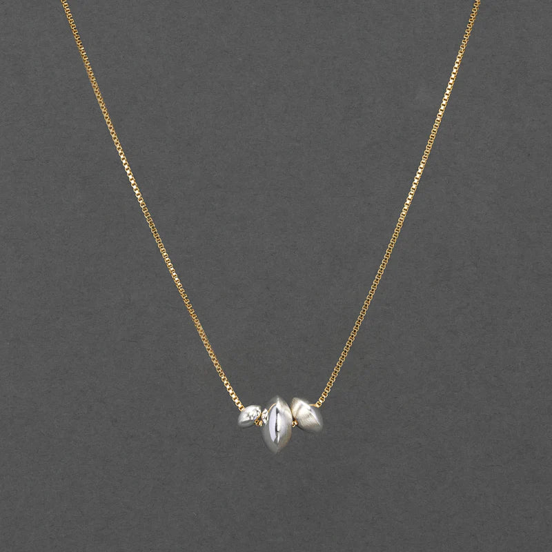 This adjustable mixed metal necklace is one of my all time favorites. Often I'm asked, "are those pearls?" as I lovingly slide the beads along the chain. The silver ellipse beads are 10mm, 8mm and 5mm in diameter. They have both matte and high polish finishes
