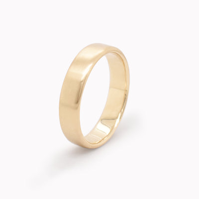 5mm river rock wedding band in satin finish yellow gold.