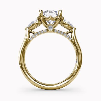 Three-Stone Ring With Pear Side Stones & Arch Halo Engagement Setting