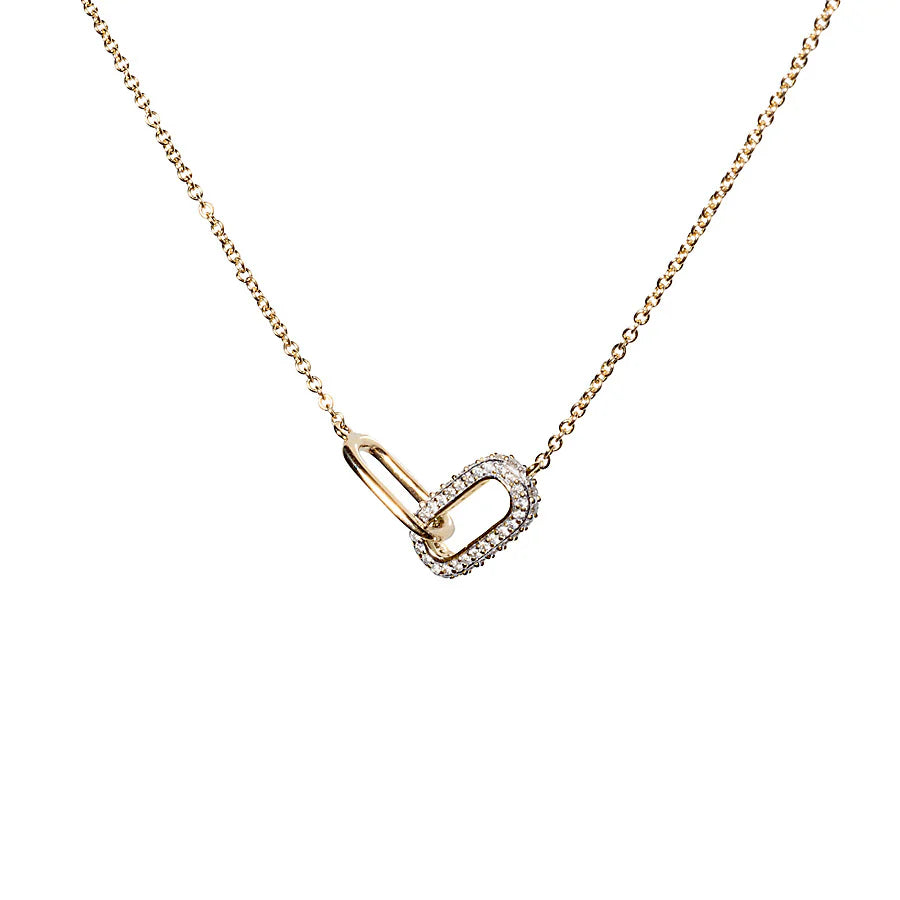 The sweetest mini 3 sided diamond Legend Link intertwined with a gold link on a delicate adjustable chain makes the Legend Mini Diamond + Gold Linked Necklace the perfect expression of love.