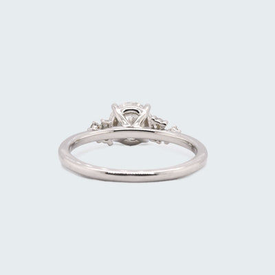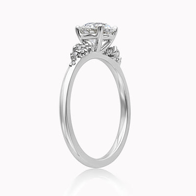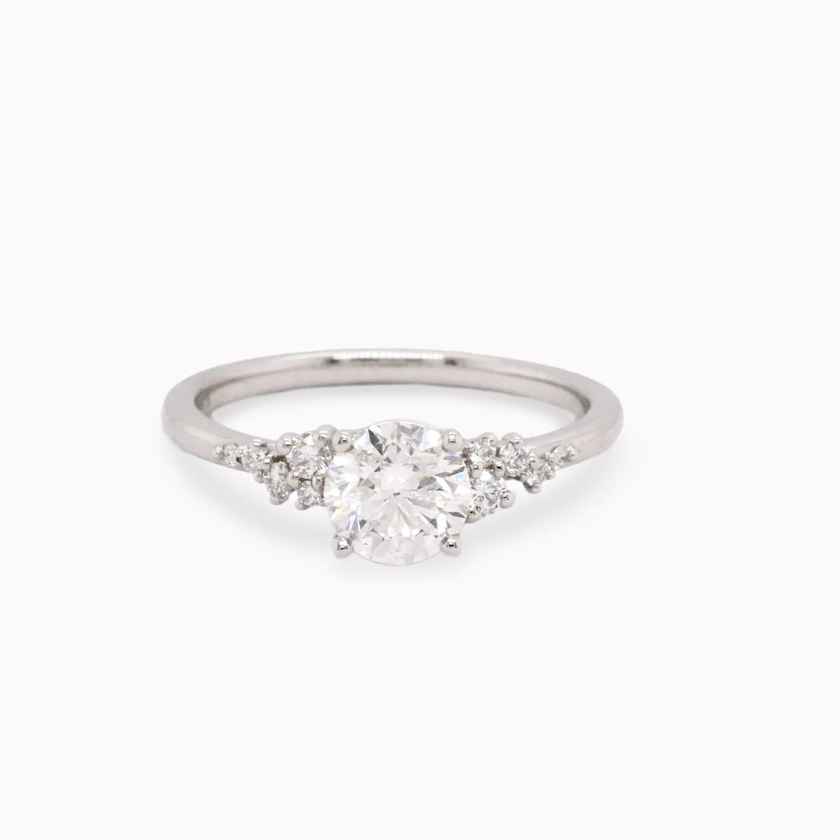 Elegant engagement ring setting featuring cascading scattered diamond accents to complement the round full-cut white center stone. This setting can be available with your custom choice of center stone—part of the exclusive Eliza Page Engagement Collection.