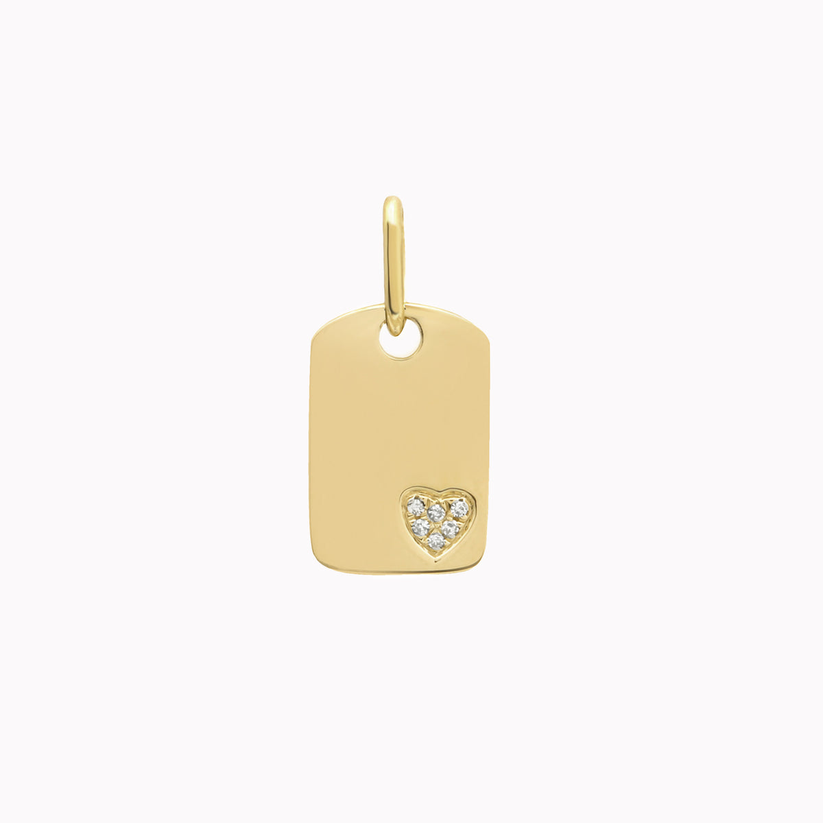 14k yellow gold ID tag charm with a diamond heart accent and a gold bail. *Can be customized with personalized engraving.