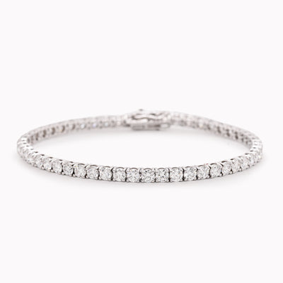 Classic white gold tennis bracelet with 7.12 carat lab-grown diamonds set in four prongs. Perfect for pairing with other bracelets or wearing alone.