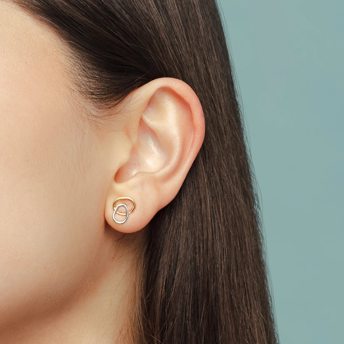 These two tone studs send out ripples of memories - moments of joy and laughter. The mirror image design is 3/8" wide and 5/16" tall, making quite the splash on your ears.