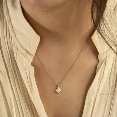 An ode to starlit skies and ornate geometry, the Summer Nights Charm Pendant features a graceful silhouette adorned with a symmetrical constellation of stones, creating a sense of harmony and movement. With four hand-set natural brilliant diamonds, this statement pendant is designed for soft light and evenings that stretch into magic.