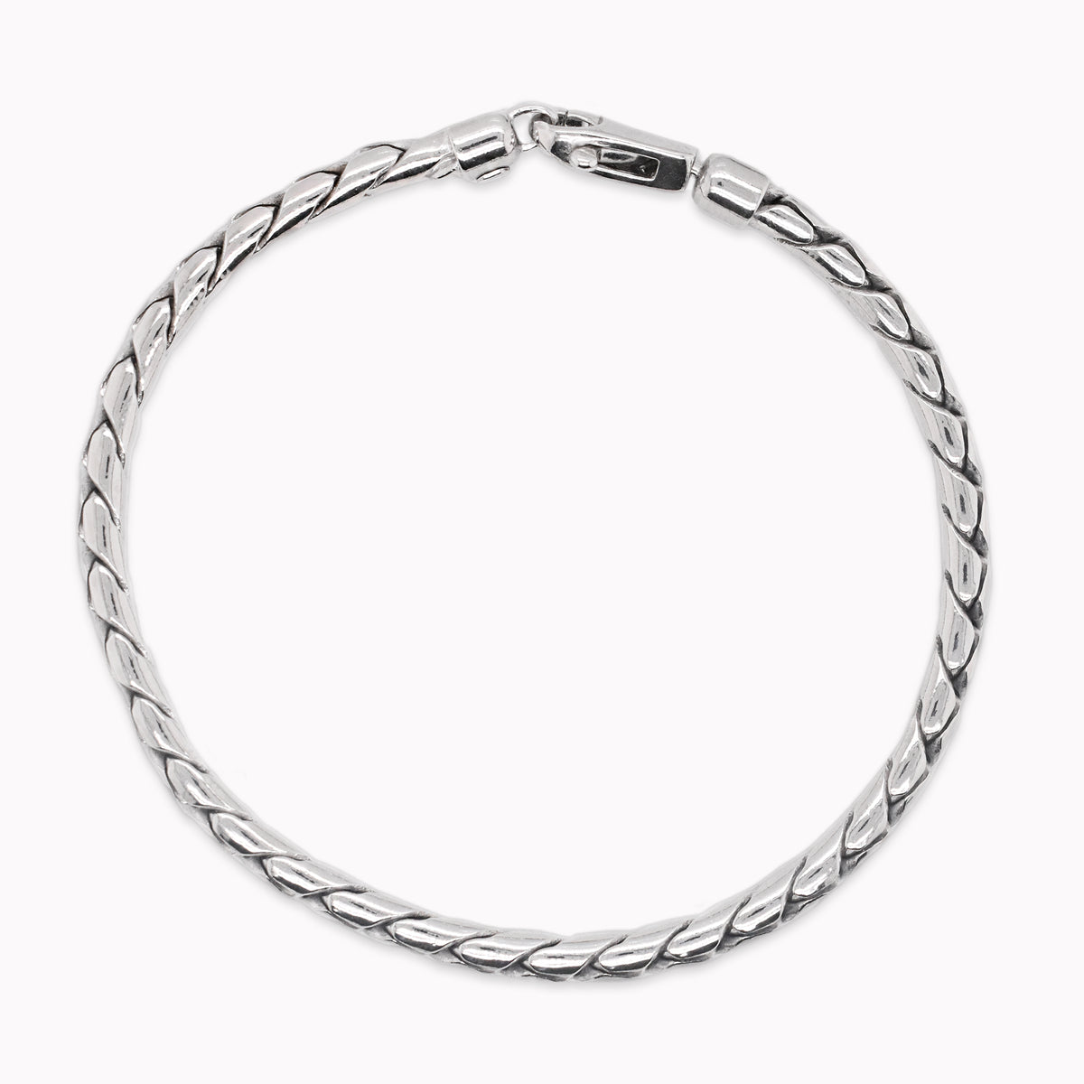 Hammered, rounded curb chain bracelet in sterling silver with 3.75mm links. Part of Eliza Page Men's Collection.